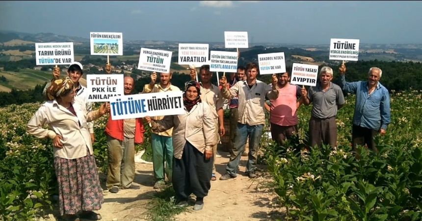 Üreticiler ellerinde “Vergilendirilmiş tütün dünyada olduğu gibi mezat sistemi ile satılsın”, "Tütüne vergilendirilmiş serbest pazar istiyoruz”, "Tütüne hürriyet” yazılı dövizlerle yetkililere seslendi.