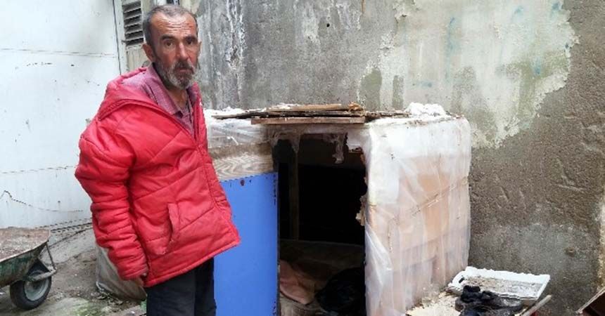 Samsun’da 9 yıldır sokaklarda yatan ve kağıt toplayarak geçinmeye çalışan Özdemir Akbulut, bir esnaf tarafından yapılan barakada kalıyor.