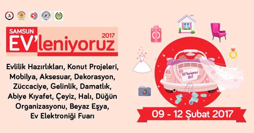 "Samsun Evleniyoruz Fuarı" 9-12 Şubat tarihlerinde Tüyap Samsun Fuar ve Kongre Merkezi’nde yapılacak. Evlilik hazırlıkları, konut projeleri, mobilya, aksesuar, dekorasyon, züccaciye, gelinlik, damatlık, abiye kıyafet, çeyiz, halı, düğün organizasyonu, beyaz eşya, ev elektroniği konsepti ile ziyaretçiler ve evlenecek tüm çiftler bu fuarda buluşacaklar.