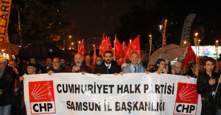 29 Ekim Cumhuriyet Bayramı’nı kutlayan CHP İl Başkanlığı tarafından düzenlenen fener alayı renkli görüntülere sahne oldu. İstiklal Caddesi DSİ önünden başlayan yürüyüşe çok sayıda vatandaş katıldı. Ellerinde meşalelerle cadde boyunca yürüyen vatandaşlar, Türk bayrağı eşliğinde marşlar söyledi. Fener alayına CHP Samsun Milletvekilleri Kemal Zeybek ve Hayati Tekin, CHP İl Başkanı Tufan Akcagöz’ün yanı sıra çok sayıda vatandaş katıldı.