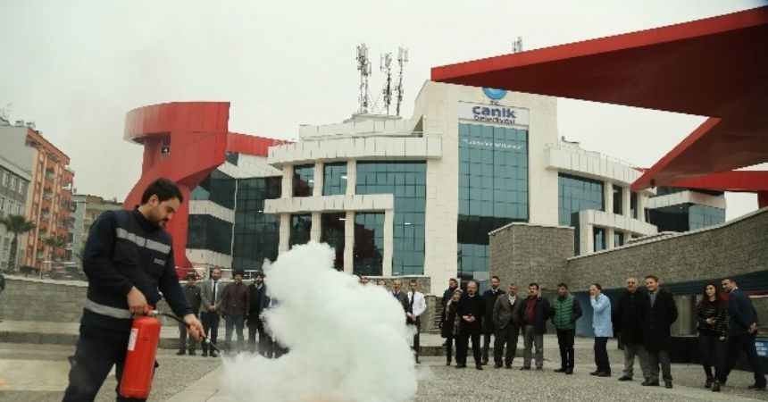 Büyükşehir Belediyesi İtfaiye Daire Başkanlığı ve Canik Belediyesi Zabıta Birimi Müdürlüğü işbirliği ile belediyede gerçekleştirilen yangın tatbikatı gerçeğini aratmadı. Tatbikat kapsamında bina boşaltılırken, temsili olarak yaralılar da sedye ile çıkarıldı.