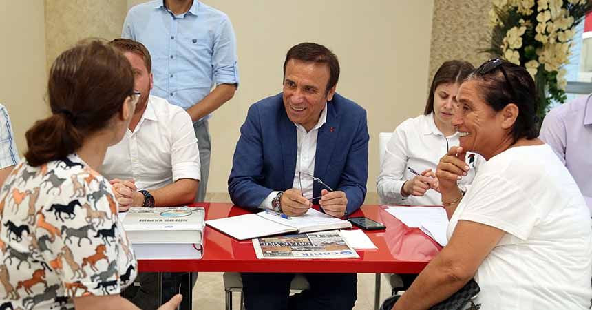 Halk Günü’nde vatandaşları dinleyen Başkan Osman Genç, "Seçildiğimiz ilk günden itibaren halkla aramıza hiç bir engel koymadık. Nasıl ki 13 yıldır makam kapımızı tamamen kaldırdıysak, halkımızla aramızdaki prangaları da söktük attık. Halkımızın derdini kendi derdimiz gibi görüyoruz. Biz halka ve Hakk'a mahcup olmadan, insanımıza hizmet etmenin sorumluluğu içerisindeyiz. Halk Günlerimizde vatandaşlarımızı dinliyoruz, istek ve taleplere göre ilgili müdürlerimiz o sorunlarla ilgileniyor. Ayrıca görüşemediğimiz vatandaşlarımızla bir araya gelmiş oluyoruz" dedi.