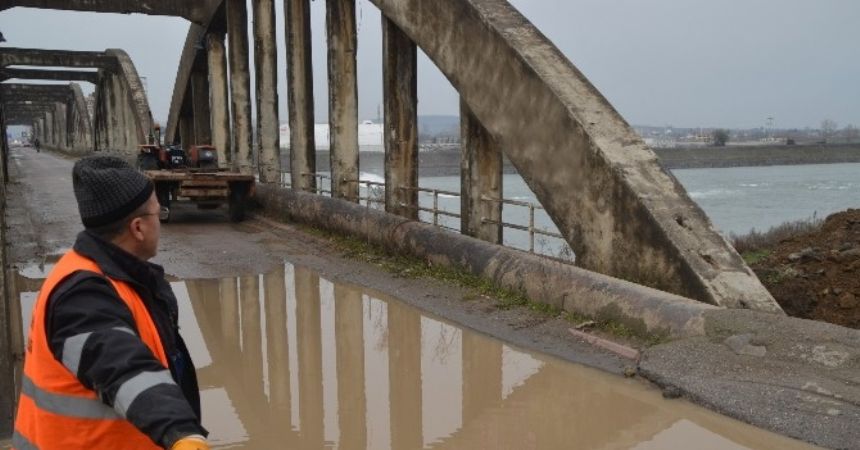 Samsun Bafra ilçesinde Kızılırmak üzerinde bulunan tarihi Çetinkaya Köprüsü’nden geçen içme suyu ana hattı boruları kaldırılıyor.