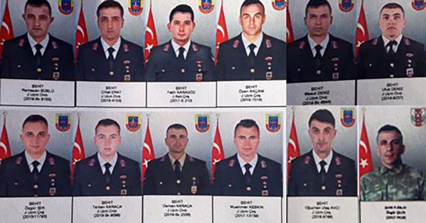 Şehitler Uzman Çavuş Özgür Işık (Düzce Merkez), Uzman Çavuş Özen Akçam (Artvin, Ardanuç), Uzman Çavuş Ramazan Süslü (Aksaray, Sultanhanı), Uzman Çavuş Ufuk Deniz (Kastamonu, Tosya), Jandarma Astsubay Çavuş Fatih Karagöz (Kocaeli, Kartepe), Uzman Onbaşı Osman Karaca (Tokat, Almus), Uzman Onbaşı Cihat Erat (Erzurum, İspir), Uzman Çavuş Muammer Keskin (Aydın, Çine), Uzman Çavuş Oğuzhan Ulaş Avcı (Kars, Arçapayı), Uzman Çavuş Mesut Deniz (Kahramanmaraş, Türkoğlu), Uzman Onbaşı Tarkan Karaca (Eskişehir, Sivrihisar) Van’ın Çatak ilçesinden güvenlik korucuları Hekim Kazgan, Nimet İnçamur, Abdulselam Mantaş, Tahsin Karan, Bayram Bulcar, Metinb Mantaş ve Mehmet Esen için Van Jandarma Filo Komutanlığında tören düzenleniyor.