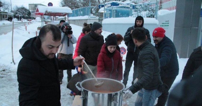 Samsun’da 3 gündür etkili olan yoğun kar yağışı nedeniyle hayat durma noktasına gelirken, İlkadım Belediyesi de evlerinden iş yerlerine veya hastanelere erken gitmeye çalışan vatandaşlara çorba ikram etti. Hastane önleri ve duraklar gibi yaklaşık 10 yerde 5 bin kişiye çorba dağıtımı yapan İlkadım Belediyesi, uygulamanın gün boyu devam edeceğini bildirdi. İlkadım Belediyesinin çorba dağıtımından memnun kaldıklarını belirten vatandaşlar, belediyeye teşekkür etti.