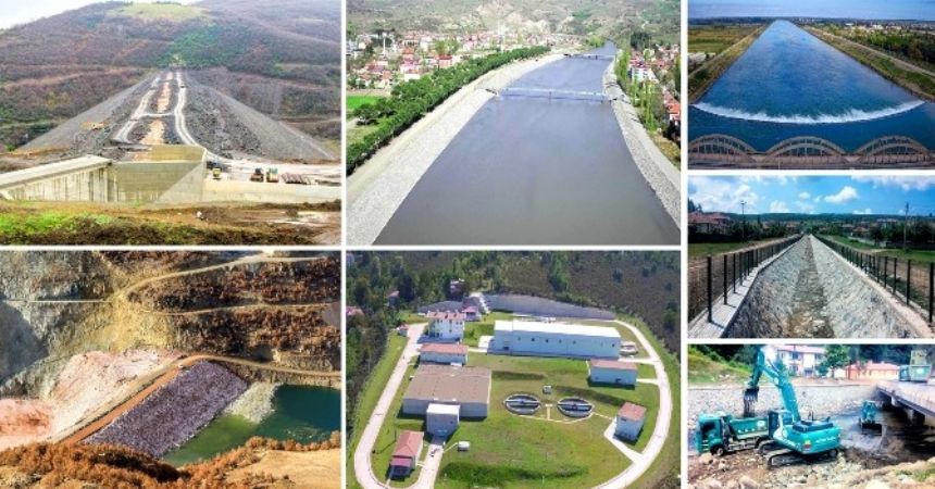 DSİ Samsun 7. Bölge Müdürlüğünden yapılan açıklamada, “Büyük su işleri projelerinin ilki Samsun Terme Projesi Salıpazarı Barajı’dır. 15 bin 400 dekar zirai araziyi sulayacak proje ile yıllık 25,74 milyon m3 içme ve kullanma suyu sağlanacak ve yerleşim birimleri taşkınlardan korunacaktır. Samsun 19 Mayıs Barajı İsale Hattı, 19 Mayıs Barajı’ndan 51 km bağlantı hattı ile 19 Mayıs İlçesi, Bafra İlçesi, Dereköy Beldesi, Yörükler Beldesi, Doğanca Beldesi, Çetinkaya Beldesi ile civar yerleşimlere, yıllık 22,6 milyon m3 içme-kullanma suyu temini sağlayacaktır. Amasya Aydınca Barajı ve Sulaması ile elde edilen 42.5 milyon m3 su ile 33.300 dekar zirai arazi sulamaya açılacaktır. Aşağı Çekerek 1. Merhale Projesi Zile, Maşat, Reşadiye, Çekerek ve Mamure Ovaları sulaması 1. kısım inşaatı: Aşağı Çekerek 1. Merhale Projesi’nde tümüyle 242 bin 410 dekar zirai arazi sulanacaktır. İhale edilen iş kapsamında 8 bin dekar arazi sulanacaktır. Geldingen Ovası sulaması 3. kısım projesi bünyesinde 27 bin 350 dekar sulama ve drenaj şebekesi yapım işi bulunmaktadır. 19 Aralık 2016 tarihinde sözleşme imzalanmıştır. 1 milyar TL yatırımlı bu tesislerle; 109 milyon metreküp su haznesi teşkil edilecek, 580 bin 490 dekar tarım arazisi sulanacak, 18 ilçe ve 125 mahalle taşkınlardan korunacak, yılda 30 milyon TL sulamada gelir artışı sağlanacaktır. Milletimize hizmet yolunda 1 milyar TL’lik yatırım Samsun DSİ hız kesmeden yatırımlarına devam ediyor” denildi.