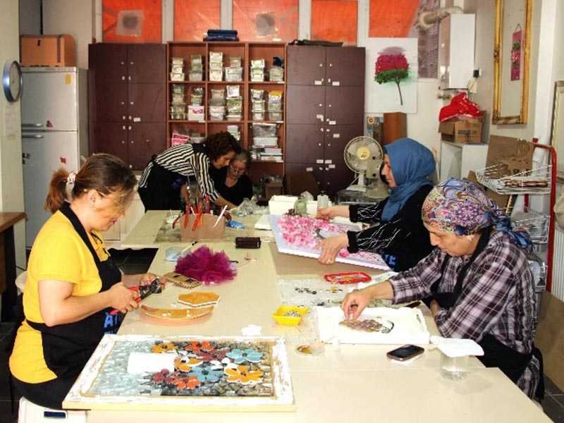Proje hakkında bilgi veren Sema Kavrak, "1996 yılında Turizm Meslek Yüksekokulu Resim Makine Bölümü’nden mezun oldum. Teknik ressam olarak bir süre çalıştıktan sonra Ankara’da mozaik eğitimi aldım. Daha sonra halk eğitim de çalıştım birçok alanda çalışmalar yaptım. 2 yıl önce eşimin de büyük desteğiyle burada atölyemi açtım ve halk eğitim vasıtasıyla el sanatlarına yönelik 30 kişiye kurs verdim. Bu arada sigortasız ev hanımlarına yönelik KOSGEB projem için uğraştım. Sigortasız ev hanımları için böyle bir proje yapmak benim için çok önemliydi. Projemi KOSGEB’e anlattığımda olumlu dönüş aldım. Kursta eğitim alan ev hanımı arkadaşlarıma projeden bahsettim. 5 arkadaşla yaklaşık bir aydır bu projeye başladık. Arkadaşlarımız yaptıkları işten gayet memnun. Sosyal güvencelerinin olması yanında maddi kazançta sağlıyorlar. El becerilerini geliştiriyorlar. Burada fikirlerimizi paylaşıyoruz ve en önemlisi de üretim yapıyoruz" dedi.