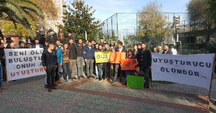 Samsun’da iki ayrı mahallede oturan gençler parkta bir araya gelip, son zamanlarda uyuşturucudan ölenlerin olduğuna dikkat çekerek, eylem yaptılar.