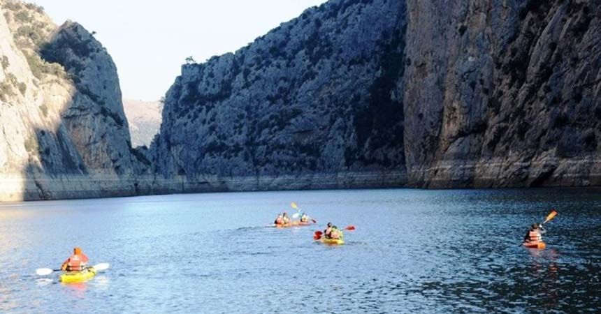Feribotla kanyona ulaşan sporcular, kanoları suya indirdikten sonra devasa doğa harikasının ortasında safari kano yaptı. 6 km uzunluğundaki kanyonda kürek çeken ve etabı bir saatte tamamlayan sporcular, kanyonu kanoyla geçerek bir ilke imza attılar.