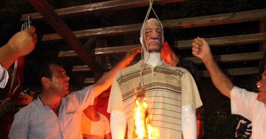 Samsun’da, Fetullahçı Terör Örgütü’nün (FETÖ) elebaşı olan Fetullah Gülen’in kuklası idam edilerek yakıldı.