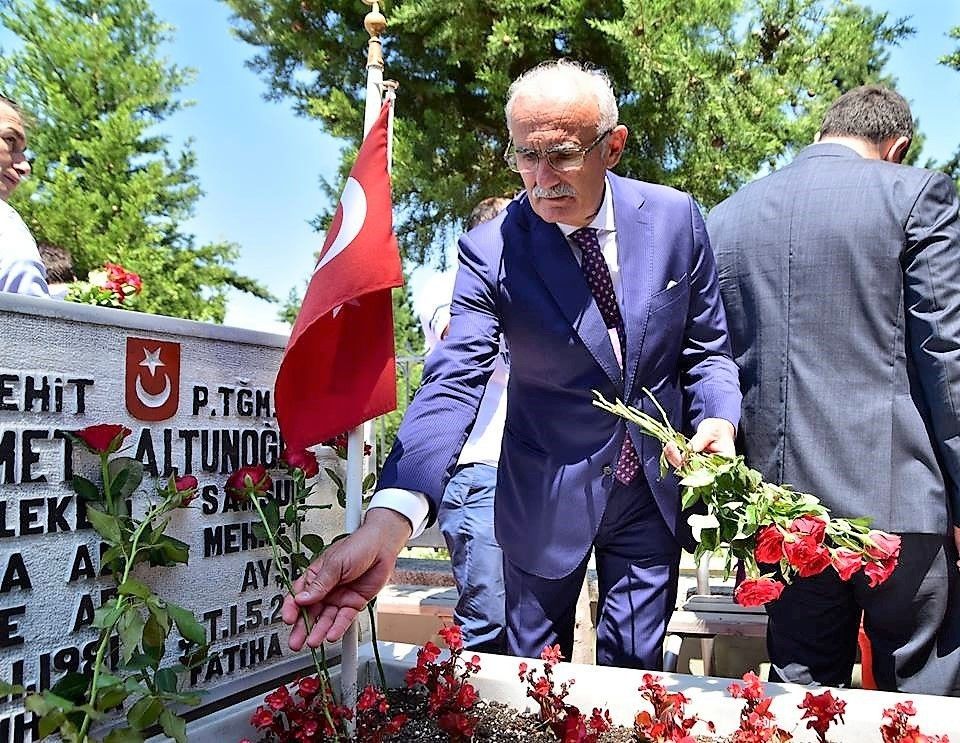 Şehit mezarlarını tek tek ziyaret edip gül bırakan ve dualar eden Başkan Yılmaz, "Türk milleti bugün şanlı bayrağımız altında özgür yaşıyorsa bunu şehitlerine borçludur. Onlar bu toprakların sadece üstünü değil altını da vatan yapmışlardır” dedi.