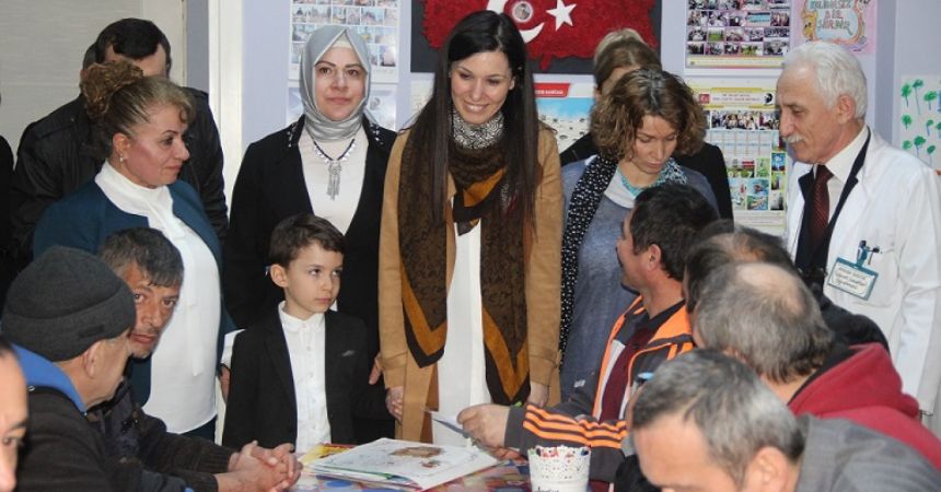 Ziyarette Karaaslan'ın kara kalem tablosunu çizen Emine Reçber tarafından karşılanan Karaaslan, ''Yusuf Ziya Yılmaz başkanımızı bu merkezi ziyaret ettiğinde Emine Reçber, 'Ben Çiğdem Karaaslan için bir şey yaptım, bunu ona verir misiniz? demiş. Başkan bey bu çalışmayı bana verince çok duygulandım. Bu nedenle Emine Reçber'i ve merkezi ziyaret ettim'' dedi. Engelli Emine Reçber ile bir süre sohbet eden Karaaslan, ardından eğitim verilen sınıfları gezerek, yaptıkları çalışmalar incelendi. Merkezde eğitim gören bir başka engelli ise Çiğdem Karaaslan adına yazılan şiir okudu.