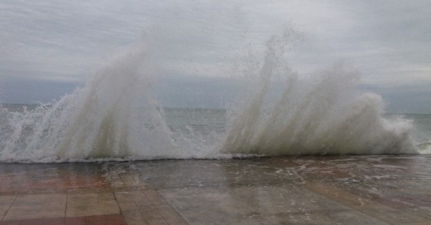 Elverişsiz hava şartları nedeniyle Karadeniz’de dev dalgalar oluştu. Kıyıya çarparak metrelerce yükselen dalgalar, tsunami gibi görüntü meydana getirdi.
