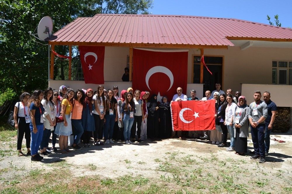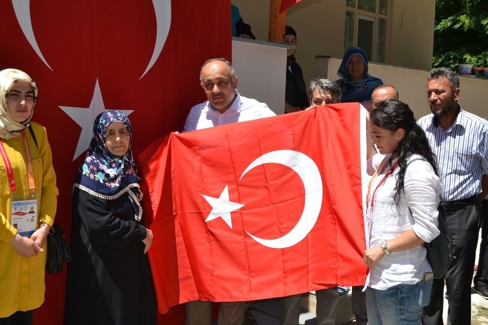 Daha sonra şehidin baba ocağına geçildi. Muhammet Ali Aksu’nun annesi Ezine Aksu’nun elini öperek taziyelerde bulunan öğrenciler, ona Türk bayrağı hediye etti. Taziye sonrası evin önünde Kur’an-ı Kerim okundu ve dualar edildi.