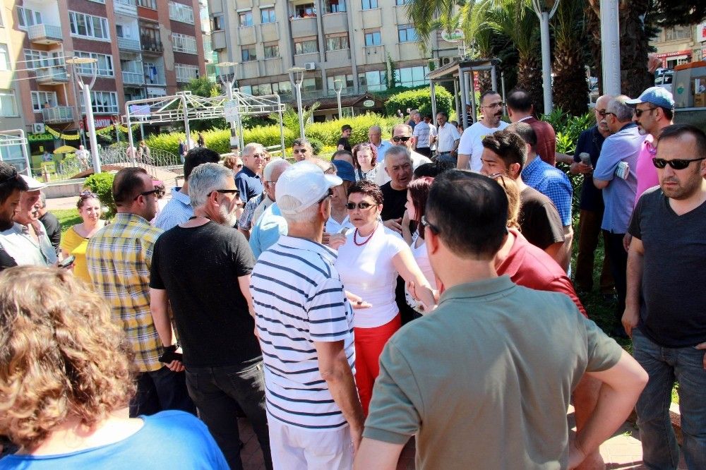 Basın açıklamasının ardından gruptan 2 üye arasında gerginlik yaşandı. Birbirlerine yumruk atan ve birinin elinde falçata olan kişileri, polisler ve diğer dernek üyeleri araya girerek ayırdı.