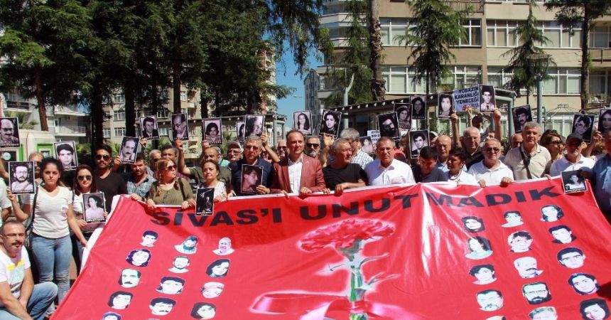 Uğur Mumcu Parkı’nda toplanan Pir Sultan Abdal Derneği Samsun Şubesi üyeleri Sivas’taki Madımak Oteli’nde yaşanan olaylar sonucu hayatını kaybeden 33 kişiyi yaptıkları basın açıklamasıyla andılar.