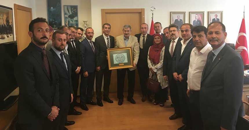 Milliyetçi Hareket Partisi Samsun teşkilatları tarafından düzenlenen Ankara programı kapsamında programa katılan MHP Atakum İlçe Teşkilatı, Genel Başkan Dr. Devlet Bahçeli’ye tablo hediye etti. Teşkilat adına tabloyu hediye eden Başkan Hatinoğlu, “İl başkanlığımızın düzenlemiş olduğu program kapsamında ilçe teşkilatımız olarak geniş katılım sağladık. Önce merhum başbuğumuz Alparslan Türkeş’in kabrini ziyaret ederek dualar ettik. Ardından Genel merkez binamıza giderek genel başkan yardımcılarımızı ziyaret ettik. Son olarak genel başkanımız Sayın Dr. Devlet Bahçeli beyi ziyaret ederek kendileri için hazırlatmış olduğumuz tablomuzu hediye ettik. Bizlere bu fırsatı tanıyan başta İl Başkanımız Taner Tekin olmak üzere tüm teşkilat biriminde görevli arkadaşlarımıza teşekkür ediyorum” dedi.