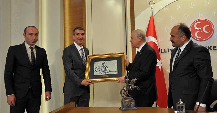 MHP Atakum İlçe Başkanı Ahmet Hatinoğlu, Genel Başkan Dr. Devlet Bahçeli’ye tablo hediye etti.