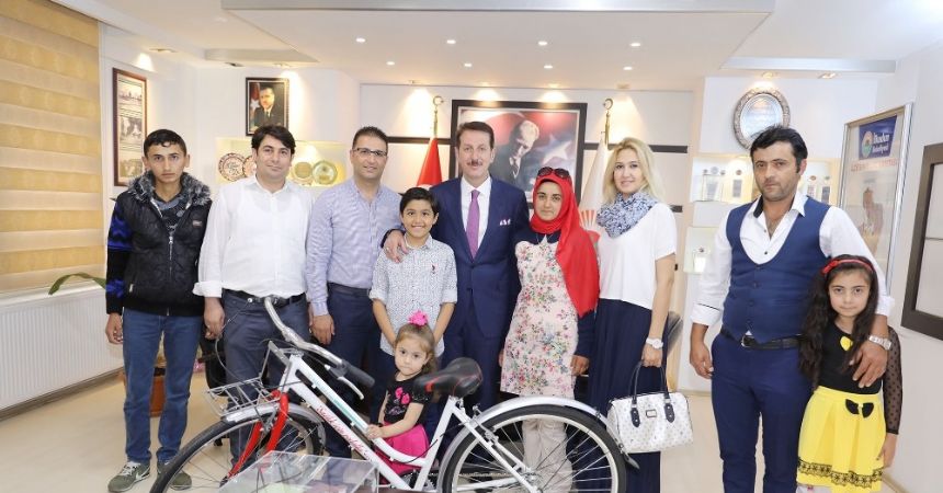 “Geleceğimize Sahip Çıkalım” isimli yağ toplama kampanyası kapsamında 1 ton atık yağ ile en çok atık yağ toplayıp bisiklet ödülü kazanan İstiklal İlkokulu 4. sınıf öğrencisi Tunahan Bütün, kazandığı bisikleti TEOG’da derece elde eden Songül Yarbaş’a hediye etti.