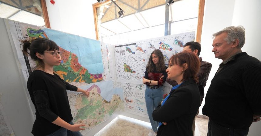 Öğrenciler, hazırladıkları projeleri ve yaptıkları analiz çalışmalarını ise Büyükşehir Belediyesi Sanat Galerisi’nde açtıkları sergide sergiledi. Samsun merkez ve ilçeleri bütününde kent yapısı analizleri, eko denge finans modelleri, bölgesel gelişim, kırdan kente ulaşan omurga, ulaşım analizi, sağlık kenti, ekonomi modülü, sular kenti Samsun, sanayi yapısı, doğal ve çevresel faktörler, Amisos antik kenti ve çevresi koruma ve geliştirme, tarihi alan tasarımı, sanayi-üniversite işbirliği, tarihi ve doğal koruma alanları ve turizm sektör analizine ilişkin çalışmalarını sergileyen öğrenciler, kendilerini misafir eden Büyükşehir Belediyesi Genel Sekreter Yardımcısı Zennube Albayrak’ı çalışmaları hakkında bilgilendirdi. Her bir çalışmayı dikkatle dinleyen Albayrak ise öğrencilerle tecrübelerini paylaşarak, Samsun’un gelecek projeksiyonuna ilişkin yürütülen çalışmalarla ilgili bilgiler verdi.
