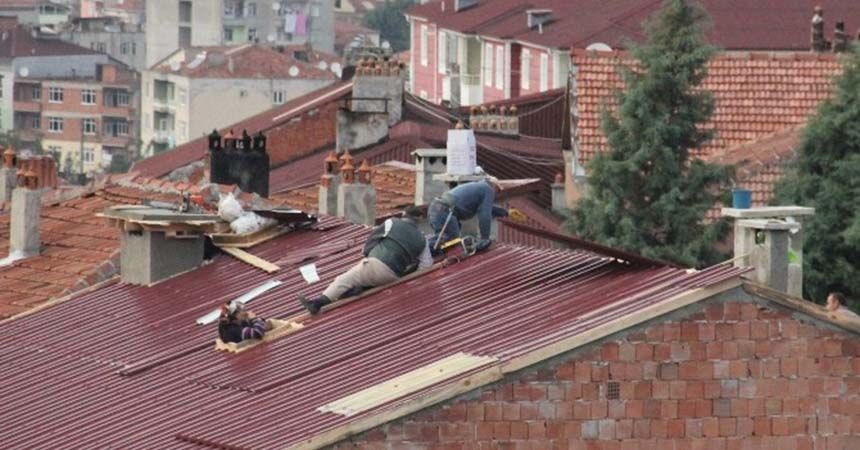 Türkiye’de alınan tüm önlemlere rağmen iş kazası sonucu ölen işçilerin önüne geçilemezken, ustaların çatılarda adeta ölüme meydan okuyan çalışma yapması yürekleri ağızlara getiriyor.