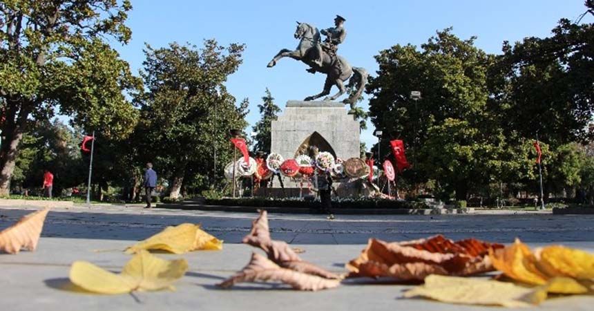 Tören, Vali İbrahim Şahin ve Büyükşehir Belediye Başkanı Yusuf Ziya Yılmaz’ın anıta çelenk sunumu ile başladı. Saygı duruşunda bulunulması ve İstiklal Marşı’nın okunmasının ardından saatler 09.05’i gösterdiğinde sirenler çaldı ve herkes saygı duruşunda bulundu. Parklarda oturanlar ayağa kalktı, yolda yürüyenler durdu, yoldaki araçlarda bulunan vatandaşlar araçlarından inerek Atatürk için 2 dakika saygı duruşunda bulundular. Daha sonra Anıt Şeref Defteri’ni imzalayan Vali Şahin, Atatürk’ü rahmet ve şükran ile andı.