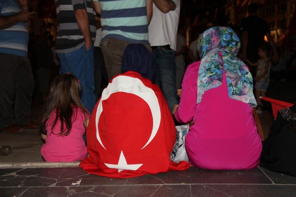 Gece geç saatlerde TBMM’den halka hitap eden Cumhurbaşkanı Recep Tayyip Erdoğan’ın halka seslenmesi dev ekrandan meydana yansıtıldı. Gecenin ilerleyen saatlerinde ise bazı vatandaşlar meydanda ve sokaklarda üstlerine Türk bayrağı sererek uyudular. Uyuyan çocukların üstleri de Türk bayrağı ile örtüldü. Çocukların seyyar satıcı arabasının üstünde ve çadırlarda uyuması ise dikkatleri üzerine çekti.