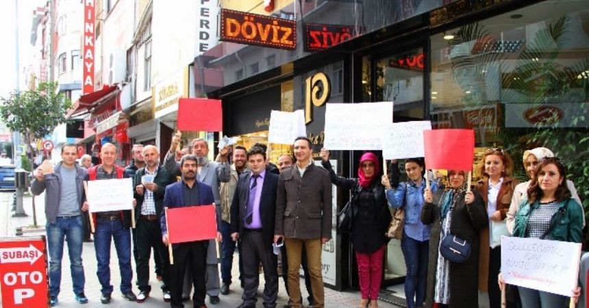 İl Başkanlığı önünde toplanan üyeler, Türkiye’deki doların yükselişini protesto etmek ve hükümete destek olmak için ellerinde bulunan yaklaşık 10 bin doları bozdurdu.