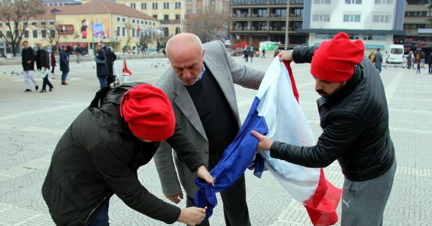 Samsun’da bir grup vatandaş Hollanda bayrağı yaktı.