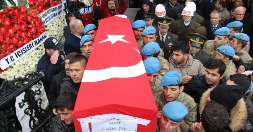 Hatay’ın Dörtyol ilçesi kırsalında çıkan çatışmada şehit olan Uzman Çavuş Salih Kayan’ın cenazesini silah arkadaşları sırtladı.