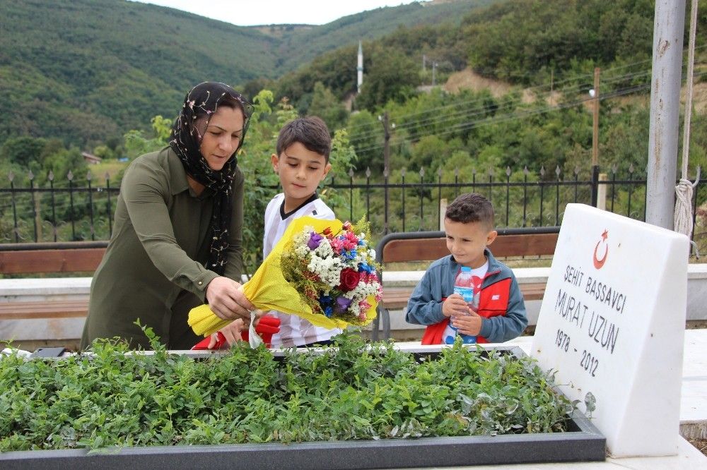 Haberi alan ve Kurban Bayramı arefesinde çocuklarıyla birlikte eşi Şehit Başsavcı Murat Uzun’un kabrini ziyarete gide Cihan Uzun, 5 yıldır ilk kez şehit eşinin kabrinden mahcup ayrılmayacağını söyledi. Cihan Uzun ayrıca Şehit Başsavcı Murat Uzun’un meslektaşlarının eşine göz aydınlığı için gönderdikleri çiçeği eşinin kabrine bıraktı.
