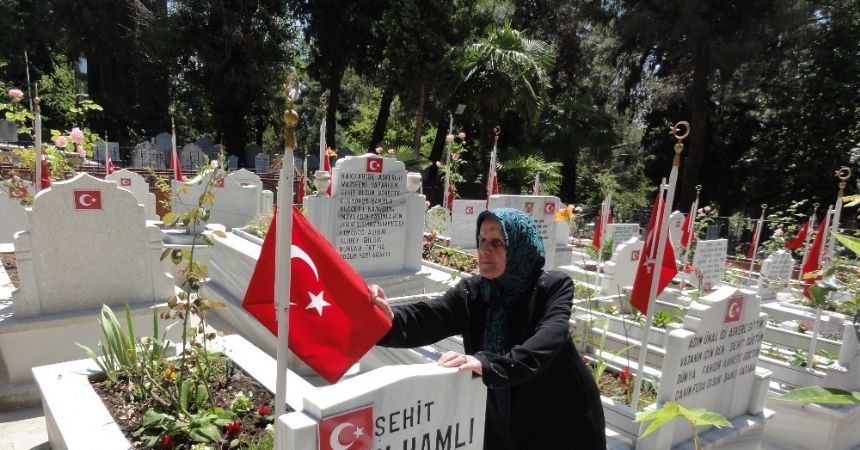 Şehit Astsubay İlhan Hamlı’nın annesi 81 yaşındaki Bedriye Hamlı da şehitliği ziyaret edenler arasında yer aldı. Aşırı sıcağa rağmen oğlunun kabri başında saatlerce duran Bedriye Hamlı, “Ben her zaman İlhan’ıma, mavi gözlü paşama koşarak geliyorum. 25 yıldır onu hiç terk etmedim, hiç yalnız bırakmadım. Bayramlarda, özel günlerde onu bekliyorum ama o hiç gelmiyor. Çünkü o şimdi vatan nöbetinde. Şehitlik oğlumun evi, onu evinde yalnız bırakamam. Ayaklarım yaşlı bedenimi taşımakta zorlansa da ben ona geliyorum. Acısı gittikçe çoğalıyor. Benim şehitlikteki nöbetim hiç bitmiyor. Şehitlikte evlat kokusu arıyorum. Evlat kokusu hiçbir şeye benzemez, o koku çok özel bir kokudur. Onun mezar taşını öpüyor, hasret gideriyorum. Şehitlik benim oğlumun evi, ben burada rahat ediyor, huzur buluyorum. Allah şehitlerimizin mekanını cennet yapsın. Vatan sağ olsun. Allah kimseye evlat acısı vermesin” dedi.