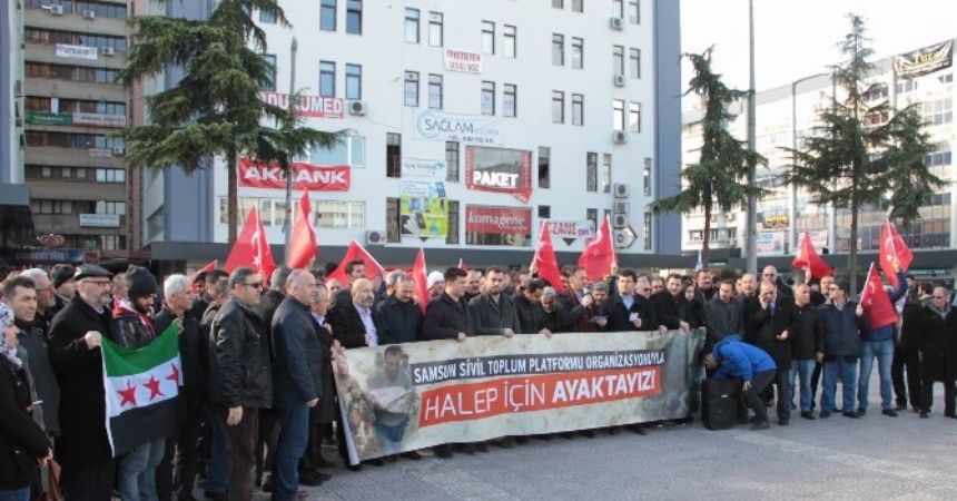 Samsun’da sivil toplum kuruluşları, Suriye rejimi ve Rus güçlerinin Suriye’nin Halep şehrinde düzenlediği hava saldırılarını protesto etti.