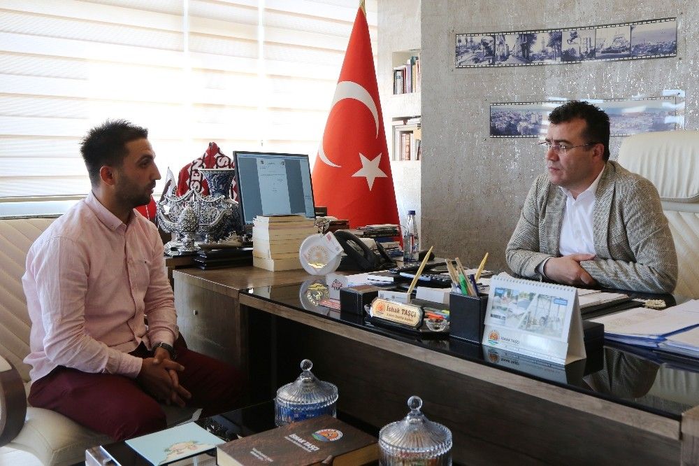 El Bab’da gerçekleştirilen operasyon sırasında, Samsun’a selamını, terör örgütüne atılacak bir top mermisinin üzerine “Atakum Belediye Başkanı İshak Taşçı’ya selamlar yazarak gönderen Uzman Çavuş Emre Yıldırım, izne geldiği memleketi Samsun’da Atakum Belediye Başkanı İshak Taşçı’yı makamında ziyaret etti.
