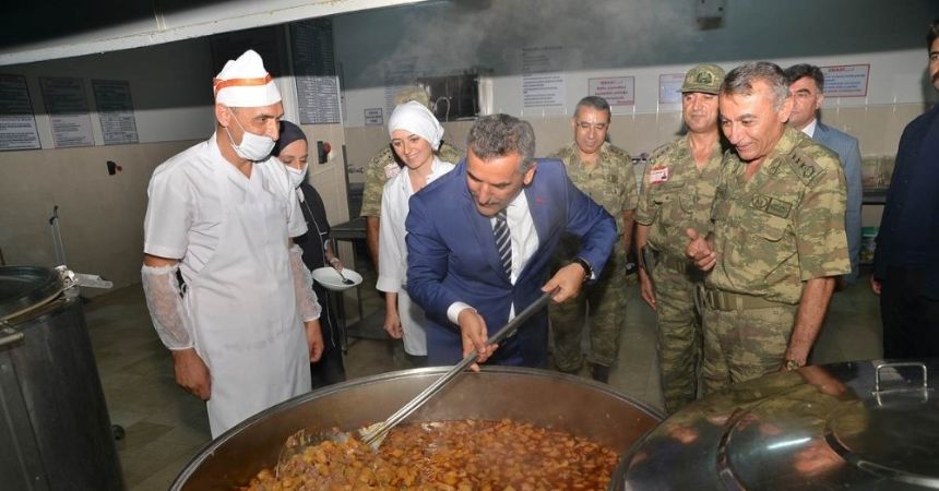 Yemekhaneyi ve soğuk hava deposunu gezen ve burada incelemelerde bulunan Vali Osman Kaymak yaptığı açıklamasında, “Sahra Sıhhiye Okulu ve Eğitim Merkezi Komutanlığını bugün ziyarete gelerek, burayı gezme fırsatı bulduk. Askerlerimizin yemeklerinin hazırlandığı yemekhaneyi ve soğuk hava deposunu da komutanlarımızla birlikte gezerek incelemelerde bulunduk. Yemeklerin kurallara uygun, temiz ve hijyenik bir ortamda yapıldığını gördük. Yemekhanenin fiziki alt yapısının güzel bir şekilde hazırlandığını gördük. Askerlerimizin yemeklerinin hazırlandığı yemekhane güven veriyor. Askerlerimizin sağlığı ve güvenliği bizim için çok önemli ve çok değerli. Askerlerimiz vatan savunmasında, canlarını bu bayrak, bu vatan, bu sancak ve bu millet uğruna seve seve veriyorlar. Bu vesileyle bütün şehitlerimize Allah’tan rahmet ve gazilerimize de uzun ömürler diliyorum. Bizler de askerlerimizi gözlerimiz gibi koruyacağız, kollayacağız ve onlara bakacağız” diye konuştu.