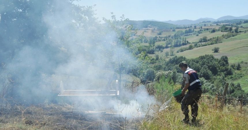 Samsun’un Bafra ilçesine bağlı Gökçeağaç Mahallesi’nde bulunan mezarlıkta otların tutuşmasıyla başlayan yangına ilk müdahaleyi jandarma yaptı.