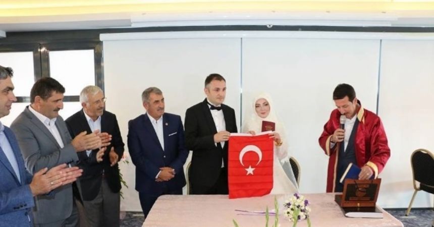 Başkan Tok, konuşmasının ardından Fatma ve Ender çiftinin nikahını kıyarak çiftin hayatlarını birleştirdi. Evlilik cüzdan takdiminin ardından Başkan Tok, yeni çifte Kur’an-ı Kerim ve Türk bayrağı hediye etti.