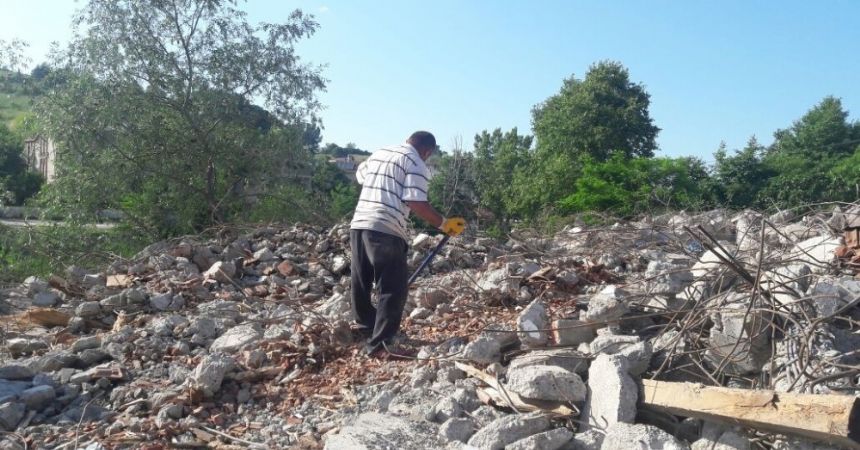 Cumhuriyet Meydanı’nda bulunan belediyeye ait iş yerleri iş makineleri tarafından yıkıldı. Yıkılan binaların molozlarının arasından demir çıkartan vatandaşlar, ekmek parası kazanma mücadelesi veriyor. Erkek, kadın, çocuk demeden beton yığınlarının arasına giren ve demir çıkartmak için çalışan insanlar, topladıkları demirleri hurdacıya satıyor. Tehlikeyi hiçe sayan vatandaşlar, yanlarında getirdikleri aletlerle demirleri molozlar arasından kesip çıkartırken, kimileri balyozlarla beton yığınlarını parçalıyor kimileri de demir makasıyla demiri kesiyor.