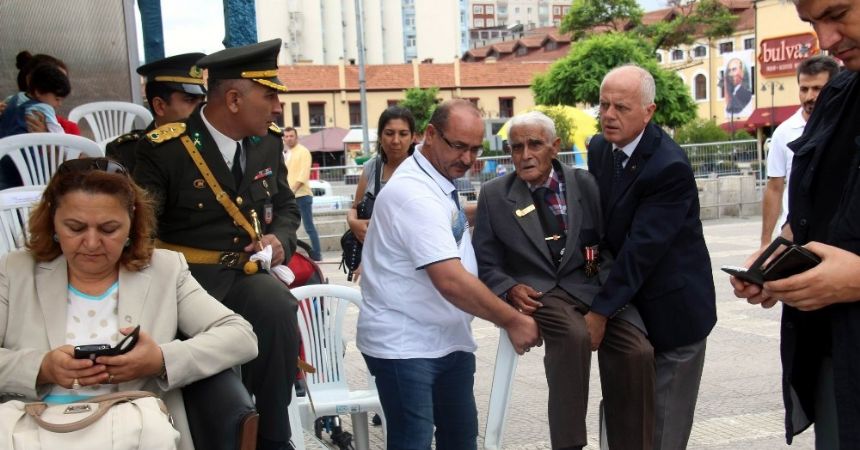 Törene, yürümekte zorluk çeken ve gazilerin yardımıyla plastik sandalyeye oturtulup, elle taşınan Kore Gazisi Selahattin Erzincan damga vurdu. Kore gazisinin son istediğini, gazi arkadaşları tören alanına sandalyede taşıyarak yerine getirdi.