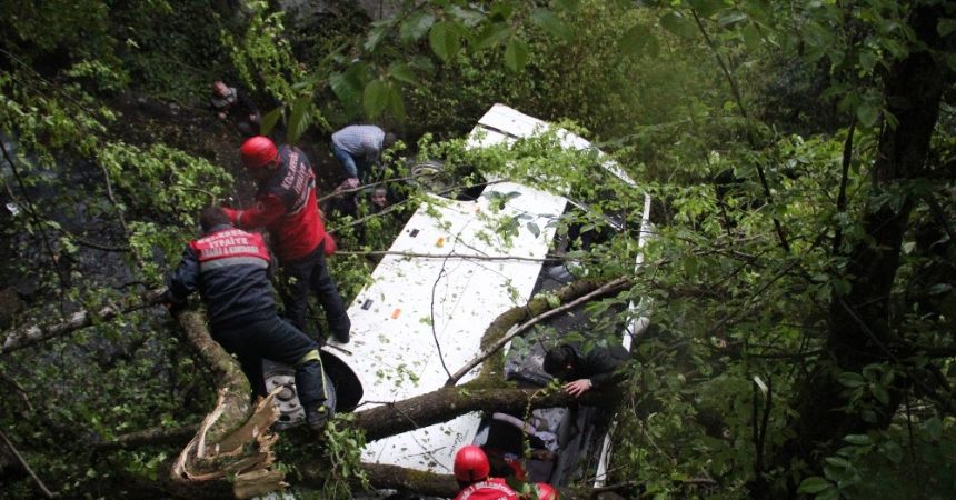 Zonguldak’ın Ereğli ilçesinde cenazeden dönenleri taşıyan midibüs uçuruma yuvarlandı. Kazada 10 kişi öldü, 16 kişi yaralandı. Kaza yerine ulaşmaya çalışanları taşıyan tarım aracının yolda devrilmesi sonucu yaşanan ikinci kazada 9 kişi yaralandı. |