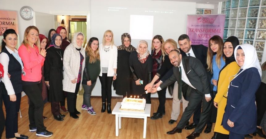 Genel Müdür Güner Armutlu, İşletme Müdürü Yasemin Turan, Kurumsal İlişkiler ve İş Geliştirme Müdürü Fatih Esen ve katılımcıların takip ettiği programın sonunda Doğum Okulu’nun 1. kuruluş yıl dönümü dolayısıyla pasta kesimi yapıldı.