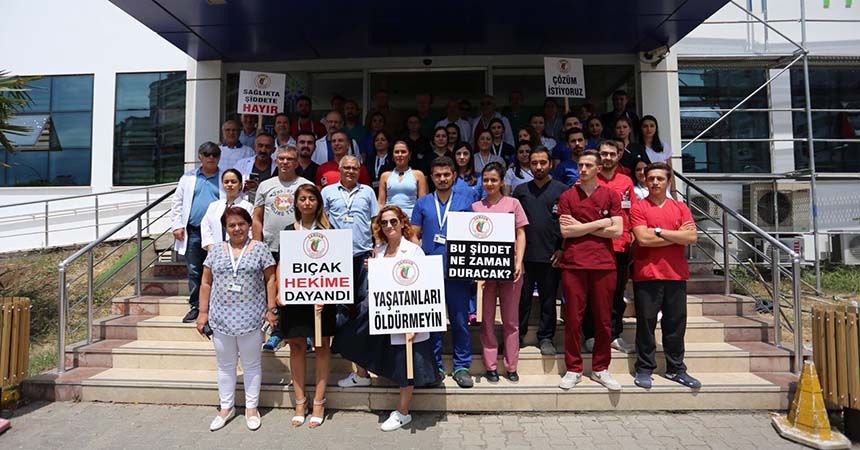 Vatandaşlarımıza, herkese bir kez daha hatırlatıyoruz: Bizler ettiğimiz yeminin ve mesleğimizin gereği olarak, her türlü güçlüğe rağmen vatandaşlarımıza sağlık hizmeti veriyoruz, sağlıklı bir ülke için emek sarf ediyoruz ve bunu riskli bir çalışma ortamında gerçekleştiriyoruz. Bunu yaparken yoruluyoruz, hastalanıyoruz, ölüyoruz. Alelacele yaşayamaya çalışan bir mesleğin üyeleri olarak; ailelerimizden, yaşamın insana sunduğu pek çok olanaktan uzak kalıyoruz. Buna rağmen son on beş yılda en çok şiddete uğrayanlar da biziz. Ama biz köle değiliz. Hiçkimse bu ülkenin tek sahibi olduğunu ve bu bağlamda istediğini yapabileceği yanılgına, yanlışına da düşmesin. Bu ülkenin asıl sahibi; tüm hizmet alanlarında emek verenler ve emek verenlere sahip çıkan, onları değer bilenlerdir. Bu değeri bilmeyenleri, emek verenlere saldıranları milletimize havale ediyoruz.”
