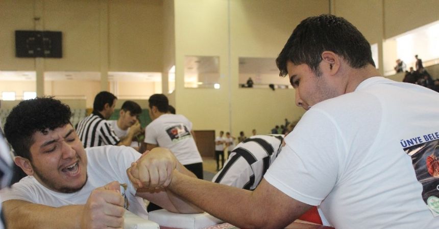 Ünye Çevre Eğitim Kültür Spor ve İzcilik Kulübü Derneği tarafından bu yıl beşincisi düzenlenen bilek güreşinde gençler kıyasıya yarıştı.