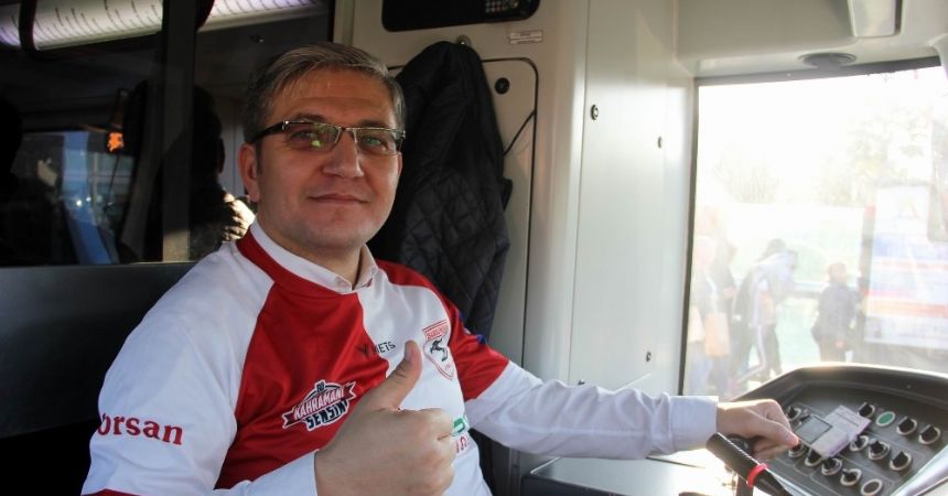 Samsun’da raylı sistem araçlarını kullanan vatmanlar Samsunspor formayı giyerek takımlarına destek oldu.
