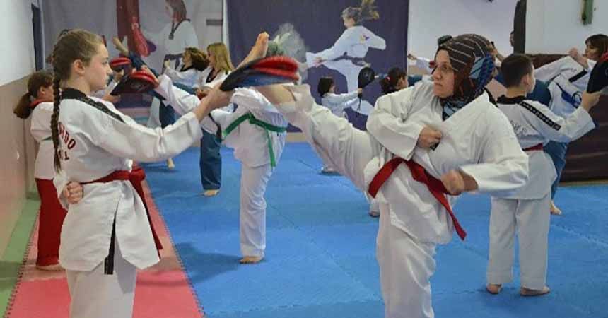 İl Gençlik Hizmetleri ve Spor Müdürlüğü Başpehlivan Recep Kara Spor Salonu'nda antrenör eşliğinde çalışma imkanı bulan yaşları 30 ile 65 arasında değişen 25 kadın, çocuklarıyla birlikte tekvando yaparak hem kendilerini savunmayı öğreniyor hem de form tutuyor. Sokakta karşılaşabilecekleri tehlikelere karşı kendilerini korumayı öğrenen kadınlar ve çocuklarının, bu sayede öz güvenleri de artıyor.