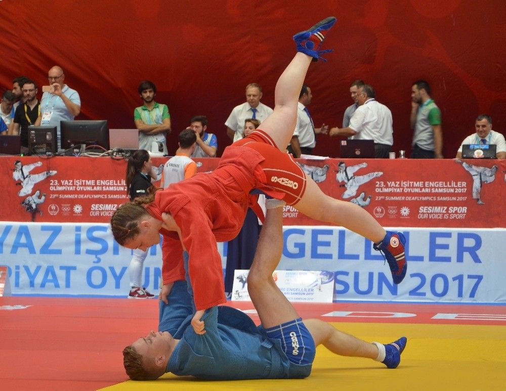 Samsun Deaflympics 2017’de madalya mücadelesi sürerken Olimpiyatlar farklı spor branşlarının da ilgi odağı haline geldi. Sambo branşı tanıtımları kapsamında Uluslararası Sambo Federasyonu tarafından Canik Atatürk Spor Salonu’nda tanıtım gösterisi düzenlendi.