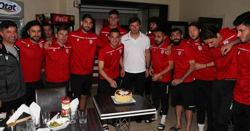 Samsunspor'un oyuncularından Enes İslam İlkin’e antrenman sonrası takım arkadaşları doğum günü sürprizi yaptı.