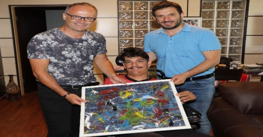 Samsun Engelliler İl Spor Merkezi sporcusu Birkan Duha Erdal, Teknik Direktör İrfan Buz'u ziyaret ederek yaptığı resmi hediye etti.