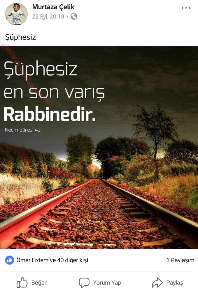 Çelik’in vefatından önce sosyal medya hesabı üzerinden "Şüphesiz son varış Rabbinedir" ayetini paylaştığı görüldü.