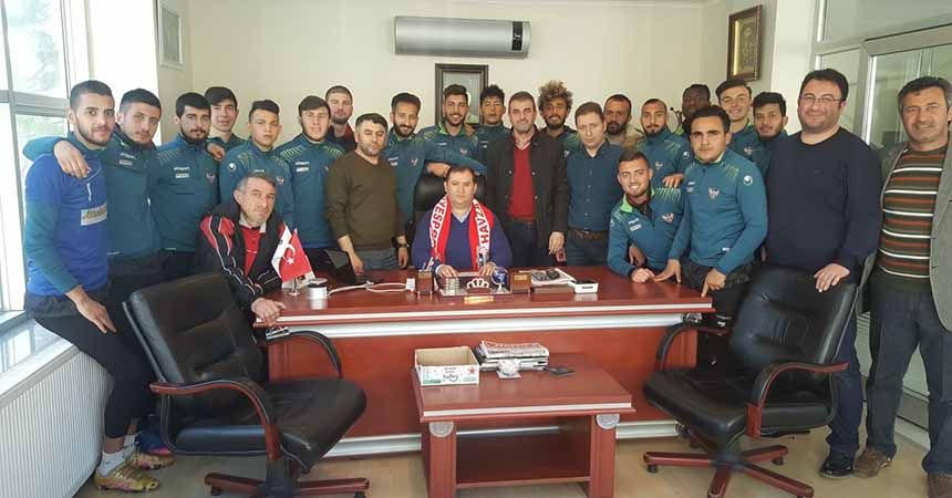 Havza Belediyespor’un geçtiğimiz hafta oynadığı Yolspor maçı galibiyeti için prim sözü veren ve galibiyet sonrası sözünü yerine getirerek söz verdiği primi veren İşadamı Dursun İkiz’i ziyaret eden Havza Belediyespor yönetimi, futbolcuları ve teknik ekibi İkiz’e teşekkür ettiler.